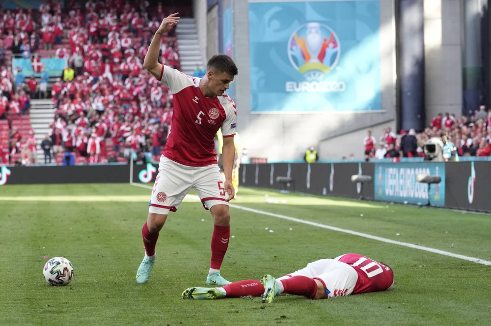 Eriksen gục ngã ở trận Đan Mạch - Phần Lan tại Euro 2020. Ảnh: Getty