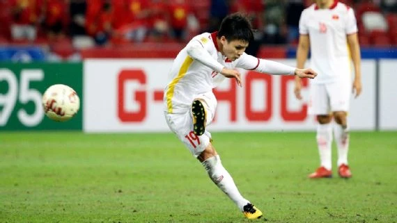 Quang Hải, cầu thủ hay nhất AFF Cup 2018 dù ghi 2 bàn ở AFF Cup 2020 nhưng không tạo ra quá nhiều ảnh hưởng lên tuyển Việt Nam ở giải này. ẢNH: AP