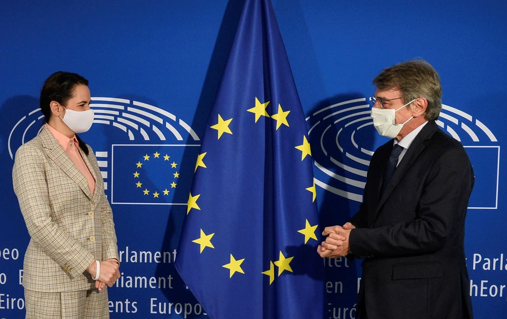 Trả lời báo giới sau cuộc họp với các ngoại trưởng EU, bà Tikhanovskaya nói rằng: "Các nhà lãnh đạo EU có lý do để không thúc đẩy các biện pháp trừng phạt nhưng tôi yêu cầu họ phải dũng cảm hơn".