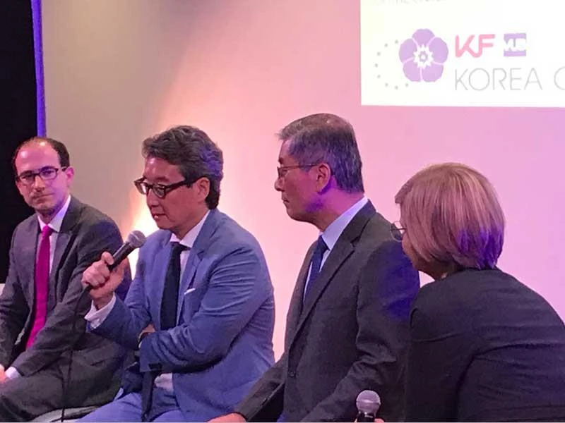 Hai chuyên gia Ramon Pacheco Pardo (bìa trái) và Victor Cha (thứ hai từ trái sang) trong một sự kiện tại Brussels (Bỉ) nhằm đánh giá kết quả hội nghị thượng đỉnh Mỹ-Triều lần một tại Singapore năm ngoái do KF-VUB Hàn Quốc và CSIS tổ chức. Ảnh: CSIS