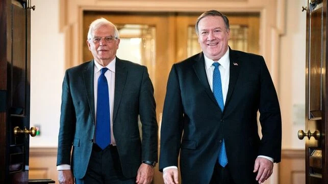 Đại diện cấp cao về an ninh và chính sách đối ngoại của Liên minh châu Âu (EU), ông Josep Borrell và Ngoại trưởng Mỹ Mike Pompeo. Ảnh: EFE