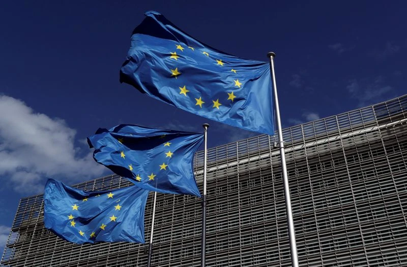 Cờ Liên minh châu Âu bay bên ngoài trụ sở Ủy ban châu Âu ở Brussels, Bỉ ngày 21-8. Ảnh: REUTERS