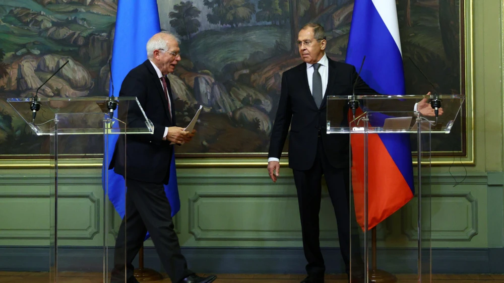 Cao ủy của EU về chính sách an ninh và đối ngoại Josep Borrell (trái) gặp Ngoại trưởng Nga Sergei Lavrov trước đó trong tháng 2-2021.
