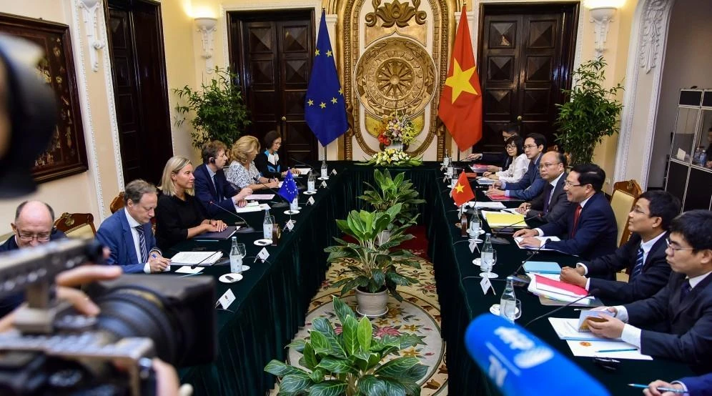 Tại buổi hội đàm, Phó Thủ tướng, Bộ trưởng Ngoại giao Phạm Bình Minh hoan nghênh và bày tỏ tin tưởng chuyến thăm của bà Federica Mogherini sẽ tạo bước thúc đẩy quan trọng cho quan hệ đối tác và hợp tác toàn diện Việt Nam - EU.
