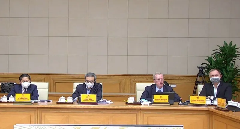 Lãnh đạo các doanh nghiệp châu Âu nêu các kiến nghị tại cuộc làm việc với Thủ tướng Phạm Minh Chính cùng lãnh đạo các bộ, ngành, ngày 9-9. Ảnh: EuroCham