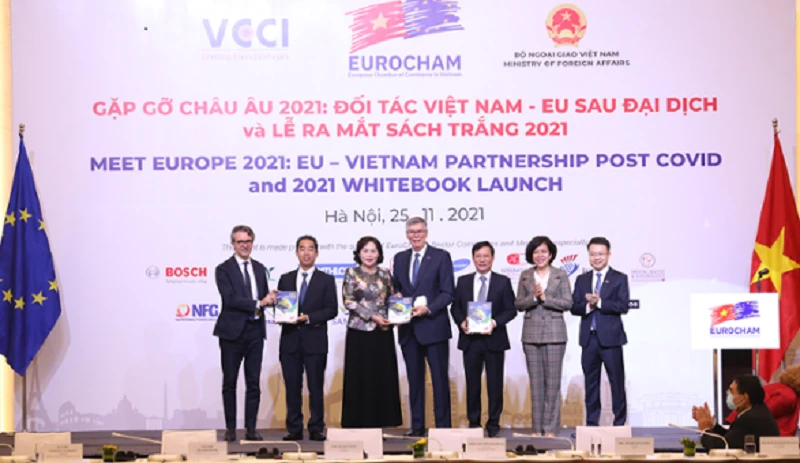 Ngày 25-11, Hiệp hội Doanh nghiệp châu Âu tại Việt Nam (EuroCham) và Bộ Ngoại giao Việt Nam đã đồng tổ chức sự kiện "Gặp gỡ Châu Âu 2021: Quan hệ Việt Nam - EU và Lễ Ra mắt Sách trắng 2021".