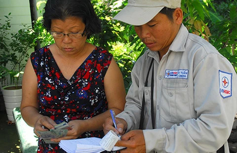 Thu tiền điện sinh hoạt tại một hộ gia đình. Ảnh: HTD