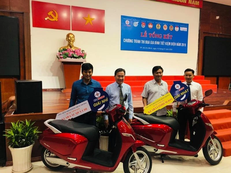 Sáng 10-1, EVN HCMC đã trao bằng khen cho 480 hộ gia đình tiết kiệm điện tiêu biểu năm 2019 và hai xe máy điện cho khách hàng may mắn.