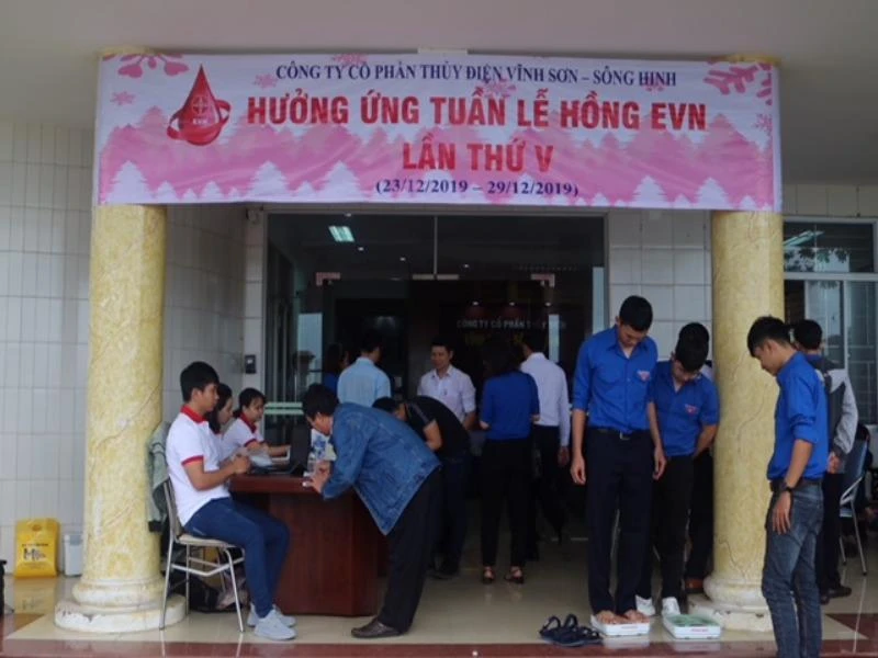 Nhiều nhân viên Công ty Thủy điện Vĩnh Sơn - Sông Hinh tham gia hiến máu.