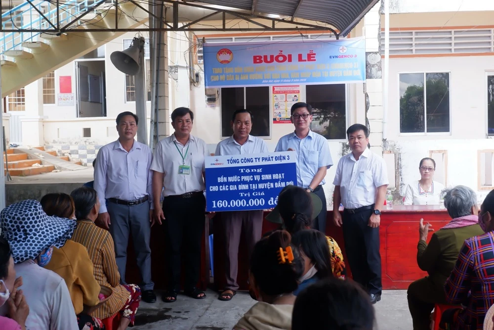 Hưởng ứng lời kêu gọi Chung tay giúp đỡ người dân miền Tây Nam bộ ứng phó thiên tai, hạn hán, xâm nhập mặn của Chính phủ và Tập đoàn Điện lực Việt Nam, EVNGENCO 3 đã phối hợp Ủy ban MTTQ Việt Nam huyện Đầm Dơi, tỉnh Cà Mau tổ chức trao tặng bồn chứa nước cho bà con có hoàn cảnh đặc biệt khó khăn, hộ gia đình chính sách, dân tộc... trên địa bàn.