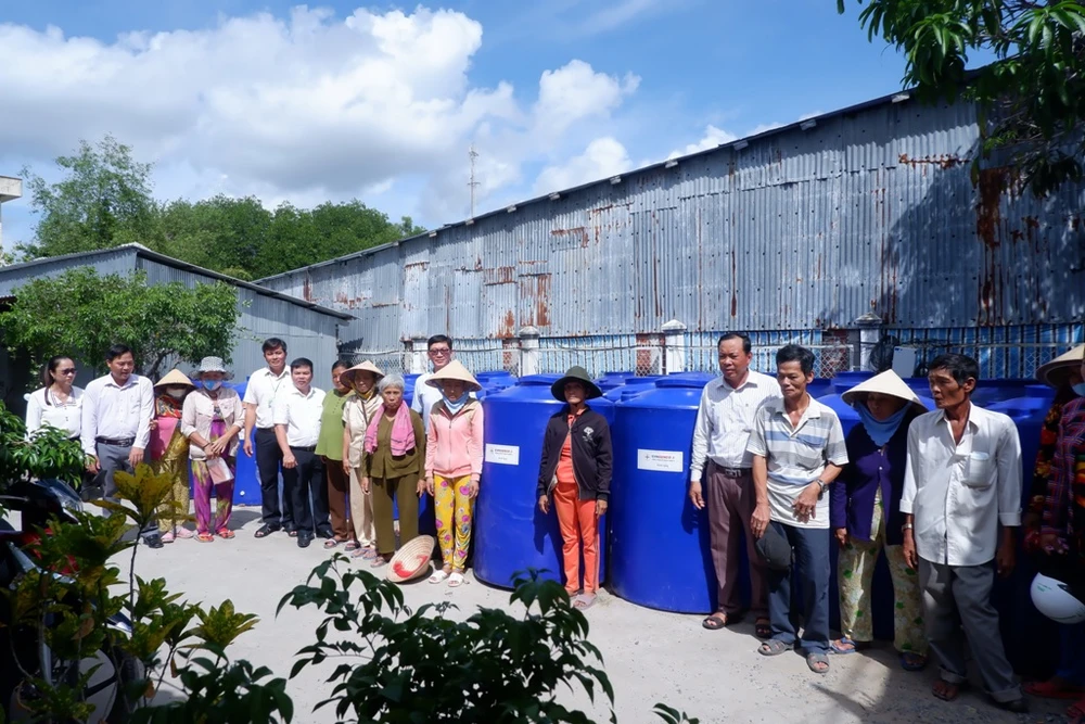 Bà con xã Trần Phán, huyện Đầm Dơi nhận bồn chứa nước từ tổng công ty.