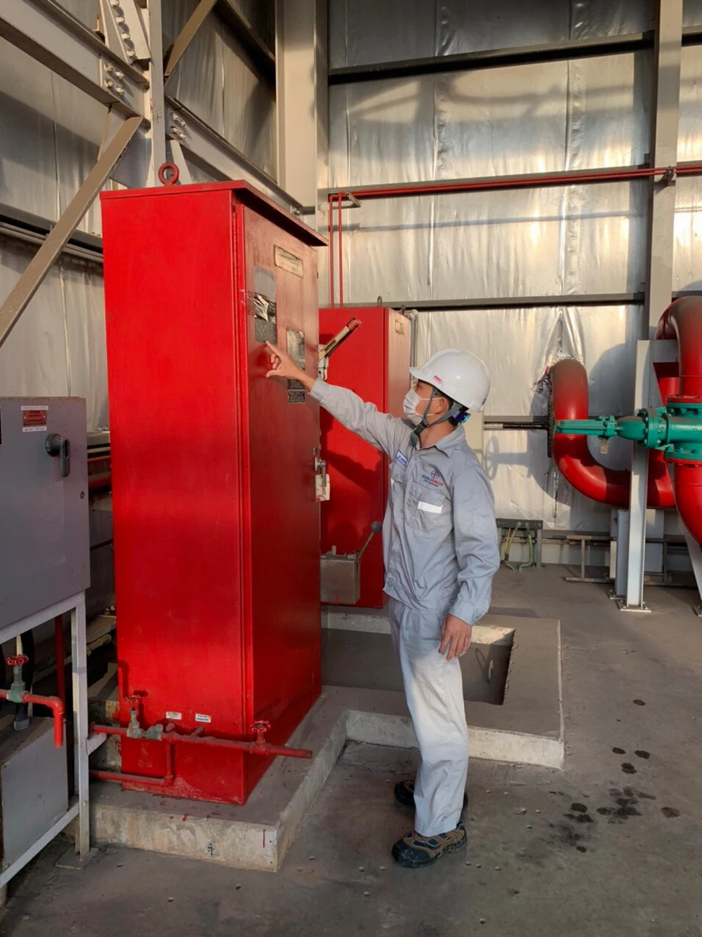 Kỹ sư Lê Đình Hải vận hành hệ thống thiết bị điện.