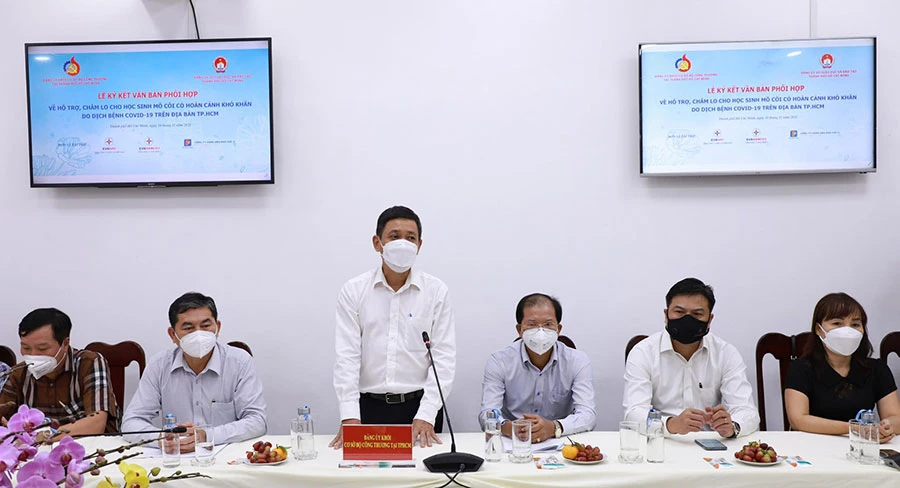 Đại diện Đảng ủy khối cho biết dịch bệnh COVID-19, nhất là đợt bùng phát lần thứ tư vừa qua đã ảnh hưởng nghiêm trọng đến đời sống xã hội. Tại TP.HCM có hơn 10.000 trẻ bị mắc COVID-19 và có hàng ngàn trẻ rơi vào hoàn cảnh mồ côi cha, mẹ do dịch bệnh, cuộc sống rất khó khăn, chịu nhiều thiệt thòi. Trong khi đó, trẻ em, học sinh là những người dễ bị tổn thương nhất.