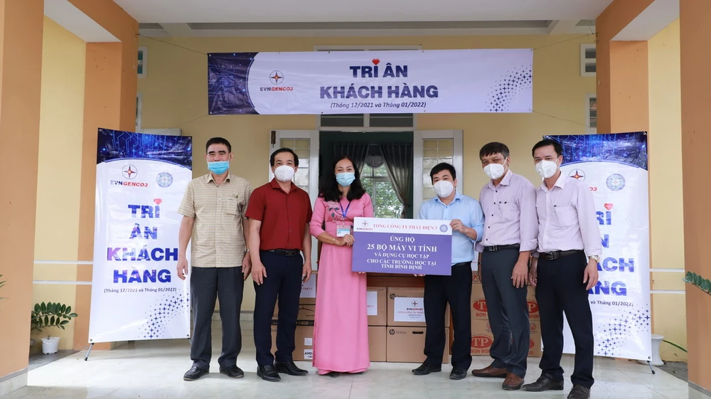 Từ ngày 24 đến 26-12, Tổng Công ty Phát điện 3 (EVNGENCO3) và Công ty CP Thủy điện Vĩnh Sơn – Sông Hinh (VSH - đơn vị liên kết với Tổng Công ty) tổ chức đoàn đến thăm và trao tặng 50 bộ máy vi tính và các dụng cụ học tập cho 8 trường học trên địa bàn tỉnh tỉnh Bình Định và Phú Yên (nơi các nhà máy Thủy điện của VSH đóng chân).