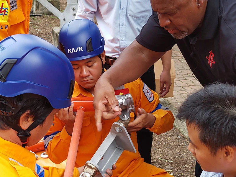 Nhân viên của EVNHCMC tham gia lớp học Line-Line cao thế đầu tiên của ngành điện. Ảnh: HƯƠNG THẢO