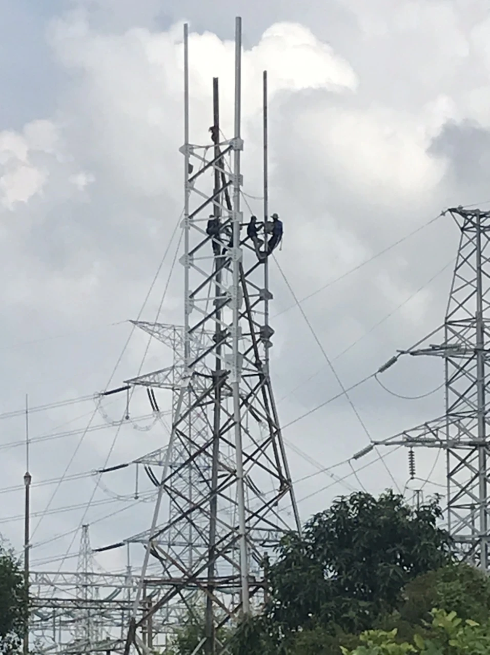 Thi công công trình cải tạo đường dây 110kV Phú Lâm – Phú Định. Ảnh: EVNHCMC.