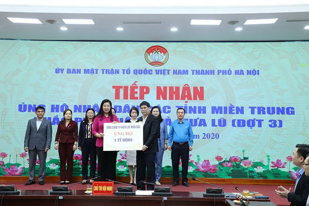 Thông qua Ủy ban Mặt trận Tổ quốc Việt Nam TP Hà Nội, ông Hồ Mạnh Tuấn, Thành viên HĐTV EVNNPC, đại diện trao 1 tỉ đồng ủng hộ cho nhân dân các tỉnh miền Trung.