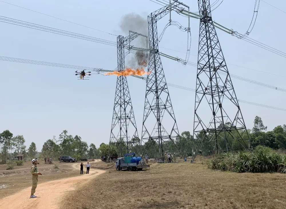 EVNNPT ứng dụng thiết bị bay để đốt các vật thể lạ mắc trên đường dây điện cao áp.