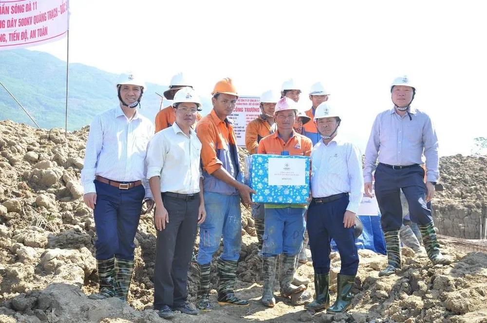 Ông Đặng Phan Tường, Chủ tịch HĐTV EVNNPT thăm và tặng quà các đơn vị đang tham gia thi công dự án đường dây 500 kV mạch 3.