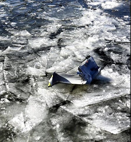 Một bộ phận được cho là của tiêm kích F-16 sau khi phi công ném thùng nhiên liệu xuống hồ Ogawara. Ảnh: Asahi Shimbun