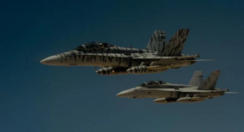 Hai máy bay F-18 của Mỹ làm nhiệm vụ không kích IS vào nầy 31-5. Ảnh: REUTERS