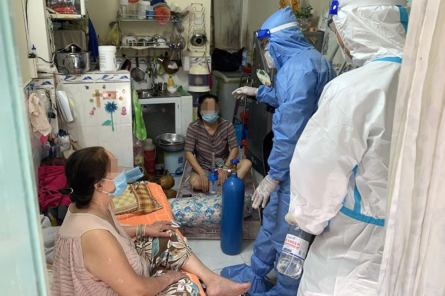 Theo ghi nhận, hai ca F0 là mẹ con cùng sống ở một nhà trọ có không gian chật hẹp chỉ chừng 4-5 m2, trong một con hẻm trên đường Phan Văn Hớn. Cả hai đều chưa tiêm vaccine, người mẹ là bà Nguyễn Thị T (71 tuổi) có bệnh nền cao huyết áp, vừa mổ nội soi trực tràng, con gái là chị Nguyễn Thị Kim Th (46 tuổi) có biểu hiện khó thở. Chị Th giãi bày thời gian qua chăm mẹ phẫu thuật ở BV nên chưa đăng ký tiêm vaccine. Sau khi cho chị Th thở ôxy, BS Phú đánh giá cả hai cần phải chuyển viện vì có nguy cơ chuyển nặng và chưa tiêm vaccine.