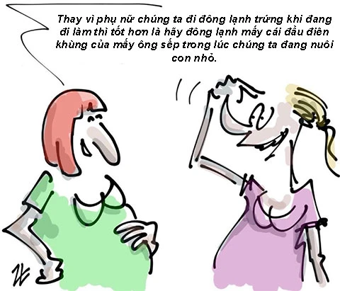 Theo hãng tin NBC khi dẫn lời người phát ngôn của các DN trên, Facebook đã bắt đầu triển khai khâu tính toán các khoản hỗ trợ tài chính cụ thể cho một nhân viên nữ đi đông lạnh trứng, căn cứ theo đúng luật pháp của Mỹ. Còn Apple sẽ bắt đầu việc này vào tháng 1-2015. Theo eggsurance.com, một trang mạng ủng hộ giải pháp trên, hiện nay phụ nữ đi làm đang đứng trước ngã ba đường: Họ sẽ phải quyết định dốc sức để tiến thân trong sự nghiệp như nam giới đang làm hay vẫn tuân theo đời sống sinh học bình thường mà tạo hóa ban tặng là lập gia đình, sinh con và nuôi nấng chúng khôn lớn. Biết rằng tại Mỹ có khoảng 20% phụ nữ sinh con đầu lòng ở tuổi 35 và hẳn nhiên tuổi càng cao thì khả năng mẹ tròn con vuông sẽ giảm.