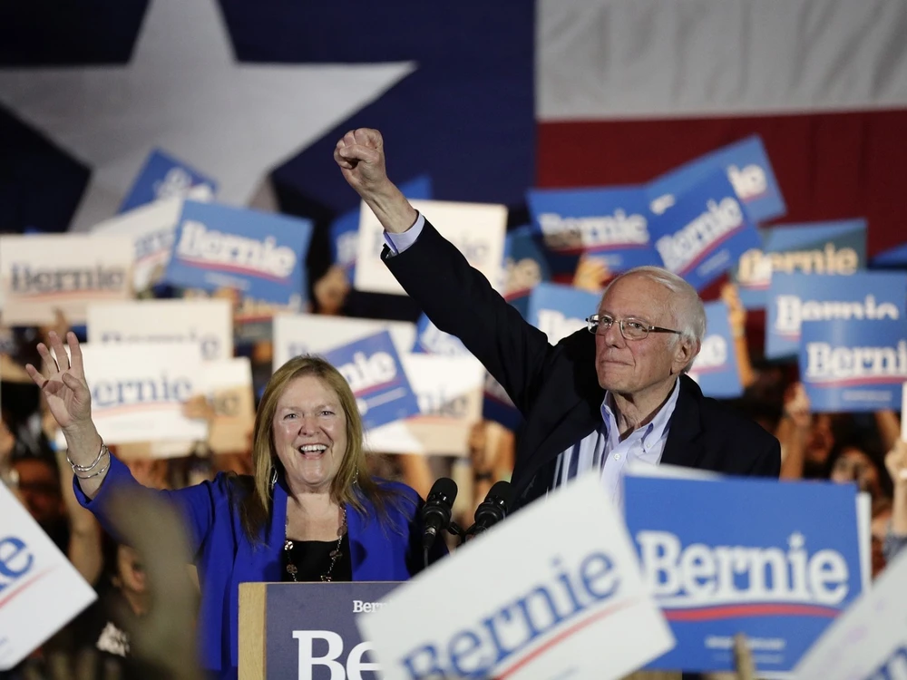 Ông Bernie Sanders và vợ tại chương trình vận động tranh cử ở San Antonio ngày 22-2. Ảnh: AP