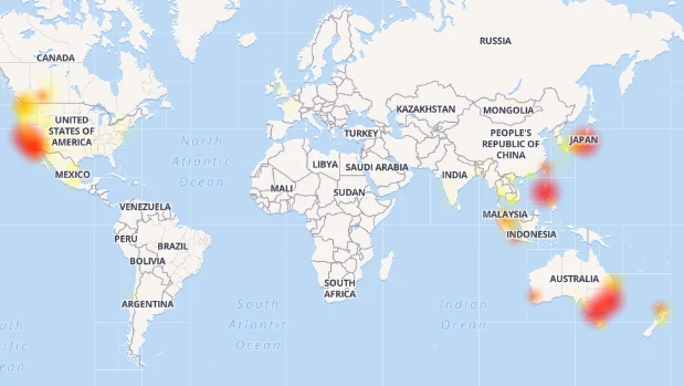 Bản đồ trục trặc kỹ thuật của trang downdetector.com ghi nhận hiện tượng này tại New Zealand, Úc, Nhật Bản, Indonesia, Malaysia và khu vực bờ tây nước Mỹ là nặng nhất.