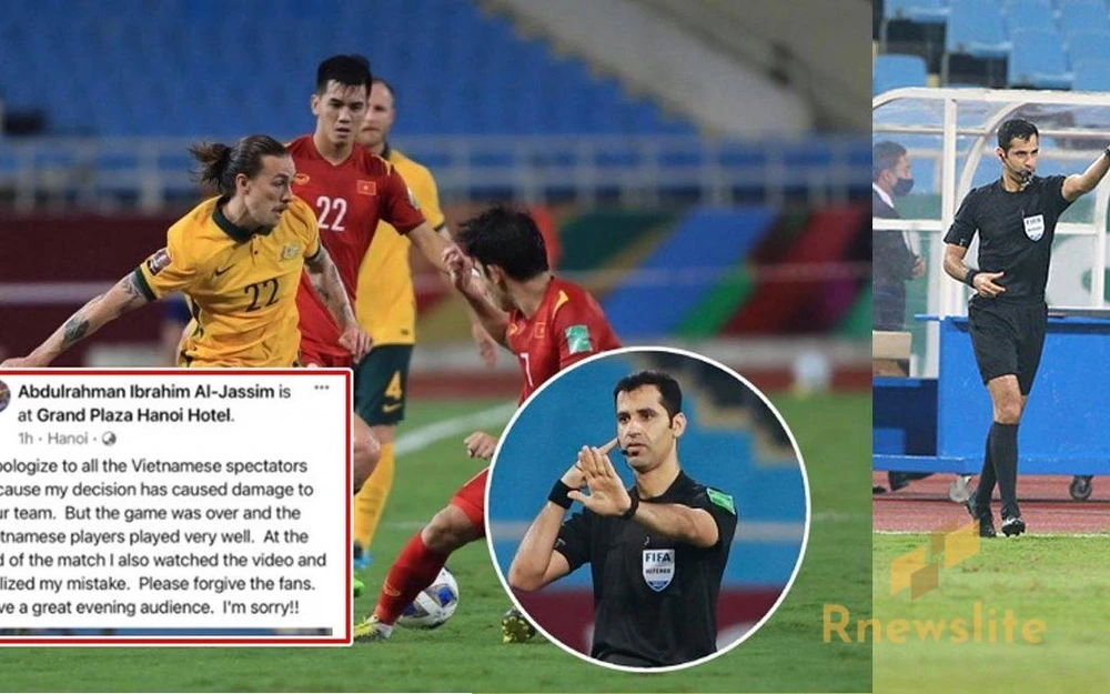 Một trang xã hội (facebook) của người được xem là trọng tài bắt chính trận Việt Nam (VN) gặp Úc, ông Abdulrahman Ibrahim Al-Jassim, người Qatar đã đăng đàn xin lỗi VN.