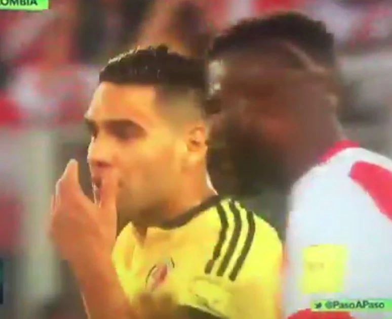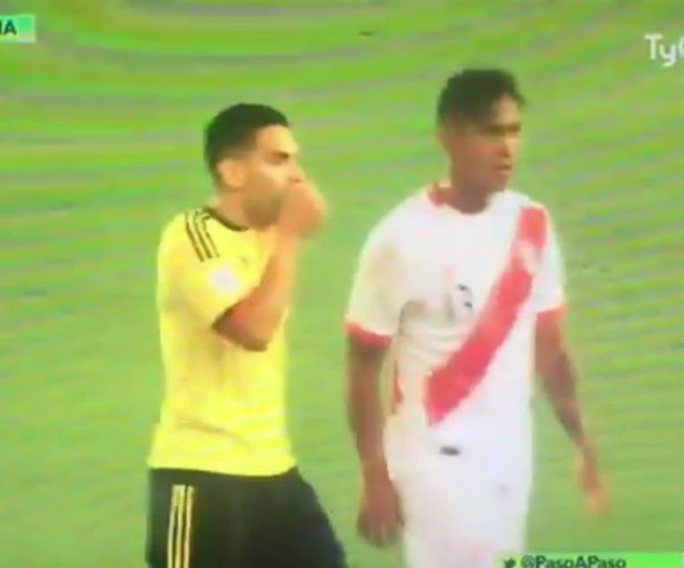 Điều đáng nói, vào cuối trận đấu, cựu tiền đạo của Manchester United hiện thi đấu cho AS Monaco, Falcao đã có hành động lạ. Khi trận đấu đang diễn ra, Falcao đã lấy tay che miệng đồng thời thì thầm điều gì đó với cầu thủ Renato Tapia bên phía Peru.