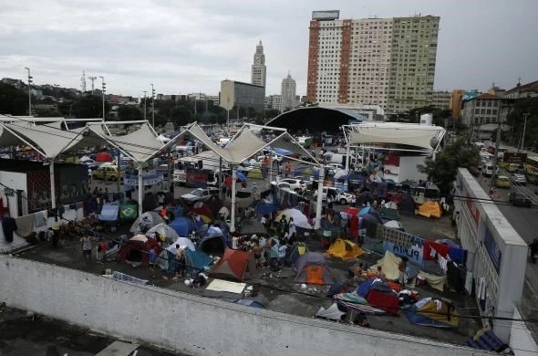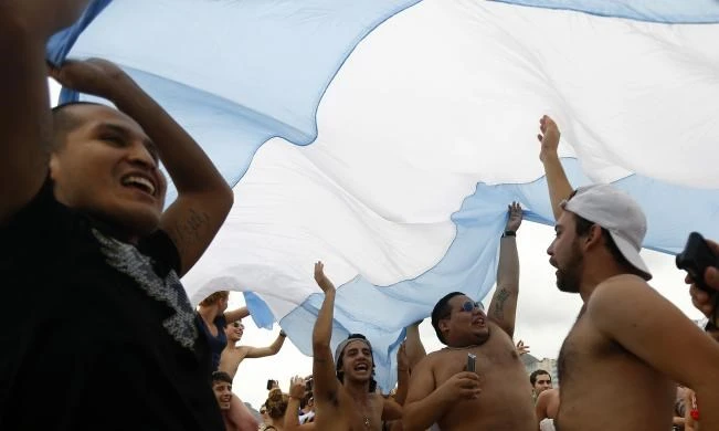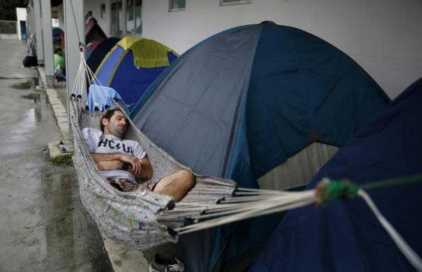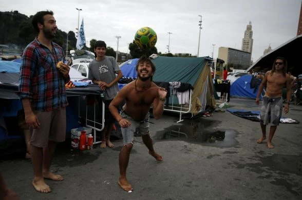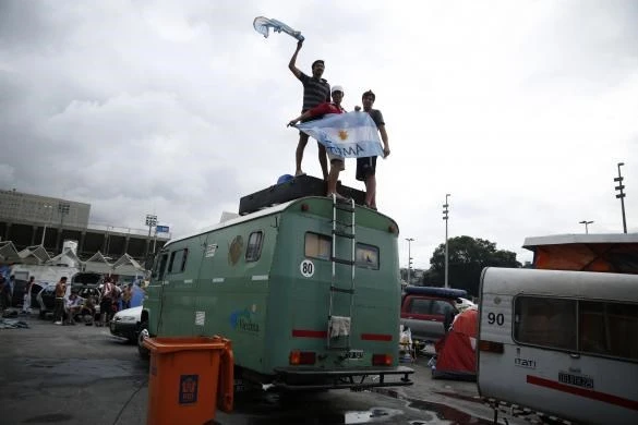 Cổ động viên của tuyển Argentina say sưa ngủ trên võng xếp ở ngay khu lều trại dã chiến của cộng đồng người nước này ở khu Terreirao do Samba. Họ có mặt tại đây là để đón xem trận chung kết giữa đội nhà với tuyển “Cỗ xe tăng” Đức trong khuôn khổ World Cup 2014.