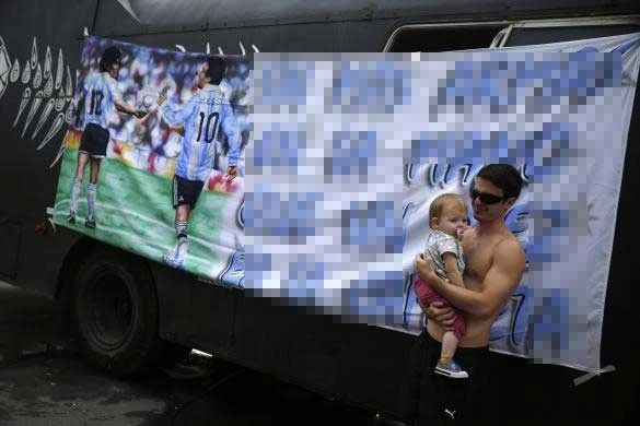Họ còn treo hẳn tấm băng rôn cỡ lớn ngợi ca chân sút siêu sao tuyển nhà, Lionel Messi.