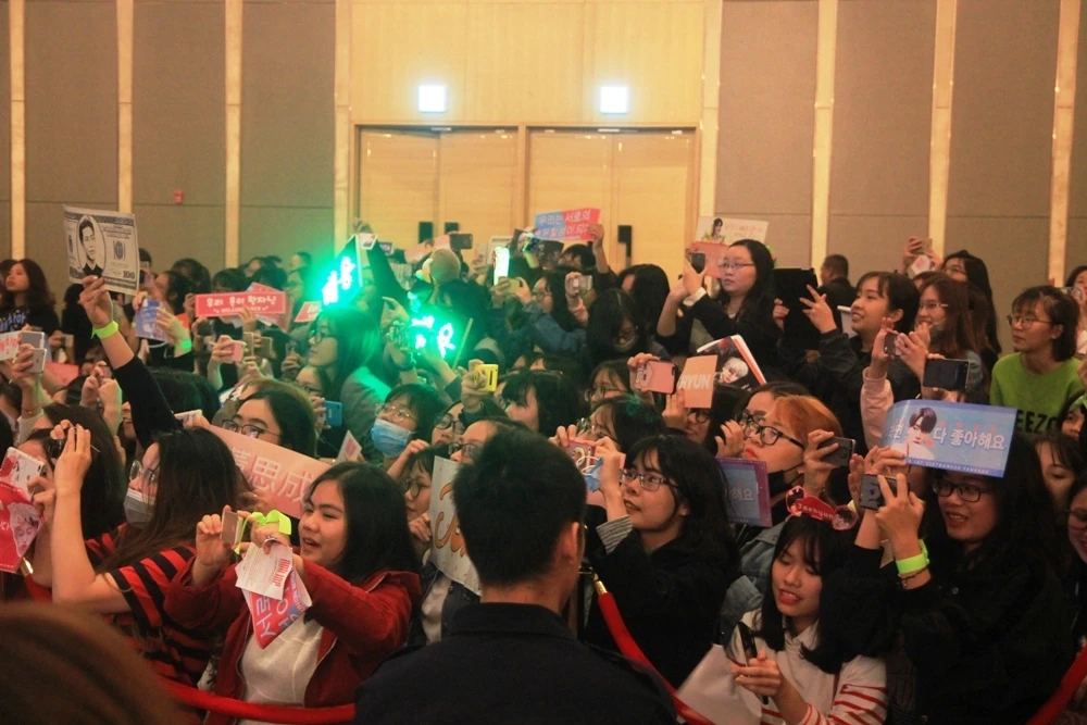 Sự cuồng nhiệt của người hâm mộ trẻ tuổi khiến cho buổi họp báo không ít lần bị gián đoạn.