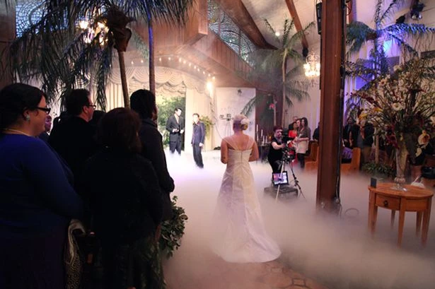 Lauren bước vào nơi cử hành hôn lễ, nơi tấm bìa cứng