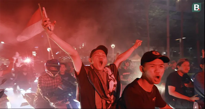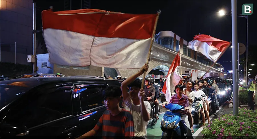 Fan Indonesia đổ ra đường ăn mừng chiếc HCV SEA Games 32 môn bóng đá nam. ẢNH: BOLA |