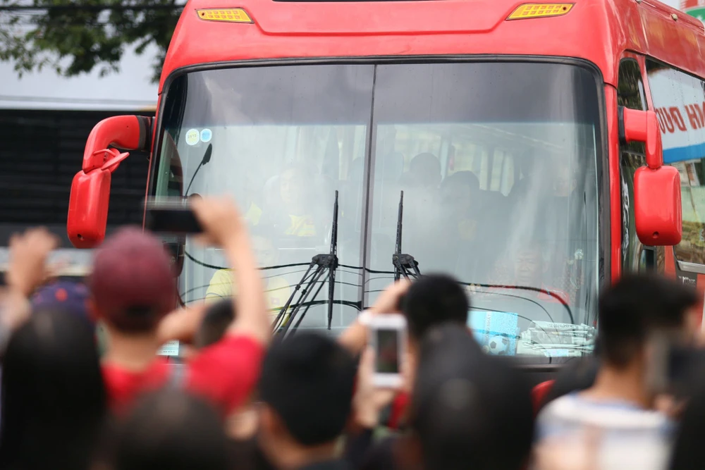 Chiếc xe buýt chở đội trờ vào là hàng ngàn fan... la hét.
