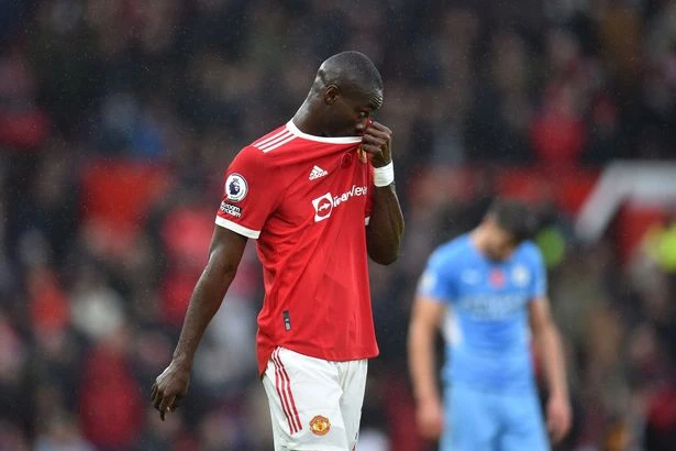 Eric Bailly chỉ chơi 45 phút của hiệp 1 trận gặp Man City rồi bị thay bằng Jadon Sancho. ẢNH: REX