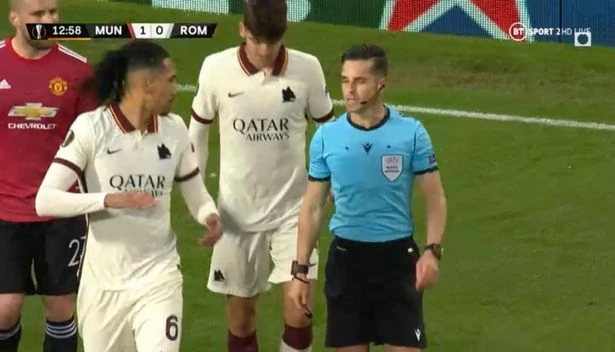 Sau ít giây chần chừ rồi bị cầu thủ AS Roma vây quanh phản ứng, trọng tài Carlos Del Cerro Grande cũng chỉ tay vào chấm 11m cho AS Roma.