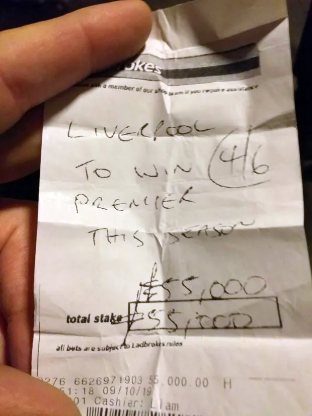 Tony Ward, 55 tuổi chính là fan hâm mộ đó. Vào tháng 10 năm ngoái, ông đã bỏ ra đến 55.000 bảng Anh để đặt cửa cho Liverpool vô địch Premier League mùa 2019-2020. Khi mẹ của Tony qua đời vào năm 2017 ở tuổi 82, ông đã nhận được khoản thừa kế 55.000 bảng Anh và ông đã quyết định… đặt cả vào khả năng vô địch của Liverpool.