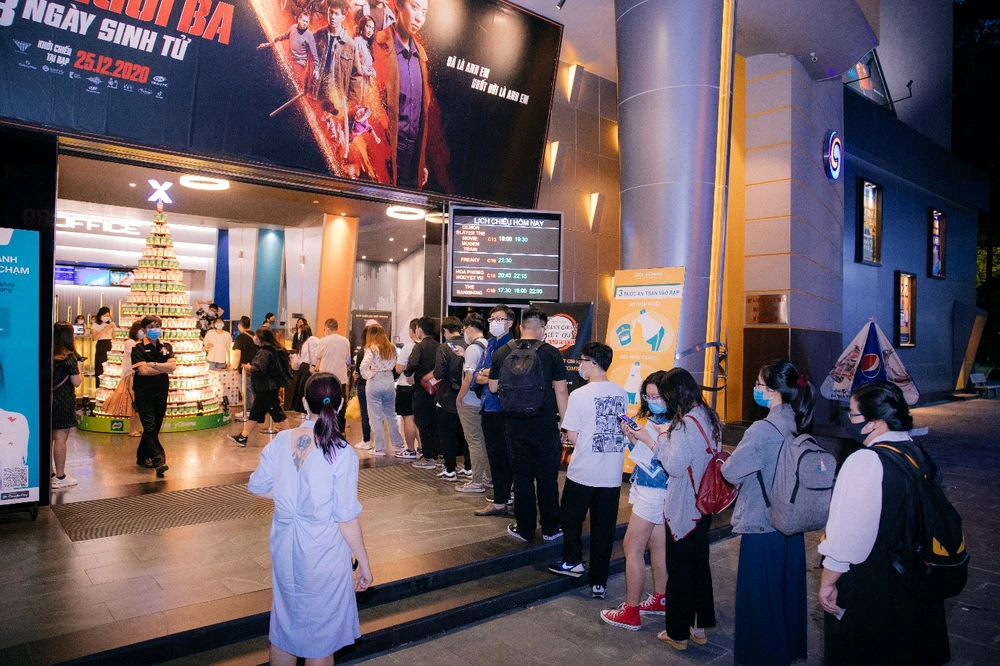 Người hâm mộ đến từ sớm để xếp hàng mua vé xem phim.