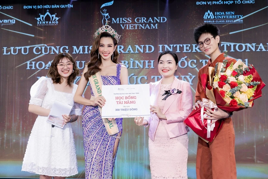 Đặc biệt, bà Võ Thị Ngọc Thúy đã đại diện Trường Đại học trao tặng cho nàng hậu suất học bổng tài năng trị giá 350 triệu đồng để cô có cơ hội tiếp tục nâng cao tri thức của mình với các khóa đào tạo sau đại học.