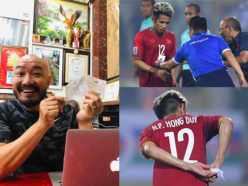 Từ thông tin lan truyền trên mạng và mảnh giấy ghi đội hình số áo của 11 cầu thủ VN đang có mặt trên sân, CĐV Phạm Văn Tiến (hay được gọi là Tiến “râu”) đã “thu thập số liệu” và nghĩ ra việc mua vé số ứng với các số áo trên, đồng thời công bố: “Nếu trúng nguyện hiến một nửa cho thầy trò ông Park Hang-seo - “Hâm mỗ” là người VN và nói là làm! Thề!”. Anh chàng fan ruột của CLB Thanh Hóa nói riêng và đội tuyển VN nói chung đã khoe cả làng hai dãy số anh mua có đủ số áo ứng với đội hình mà thầy Park chỉ đạo qua giấy cho Hồng Duy.