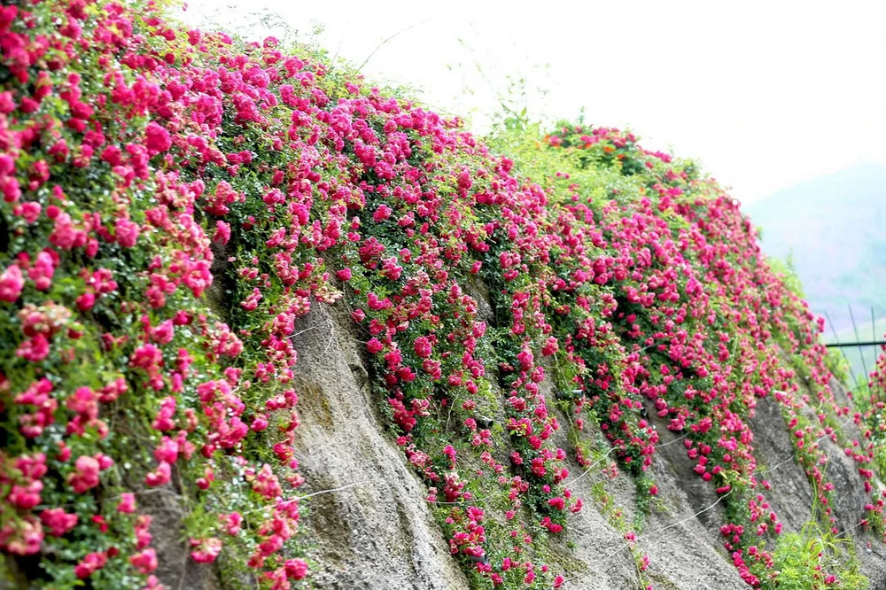 Hoa hồng Sa Pa nở rộ tạo nên những suối hoa, thác hoa chảy tràn trên từng vách đá