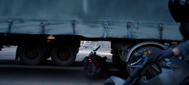 Đặc biệt chiếc mô tô phân khối lớn của Brixton đã có màn “trình diễn” rùng mình ở các phân cảnh chui lọt qua gầm xe tải container 18 bánh hay “lạng lách” trên hàng chục chiếc ô tô cưc ấn tượng. Tuy nhiên, với kinh nghiệm đua xe “lão làng” của Shaw, bộ ba Hobbs, Shaw và em gái Hattie đã có màn đảo ngược tình thế ngoạn mục.