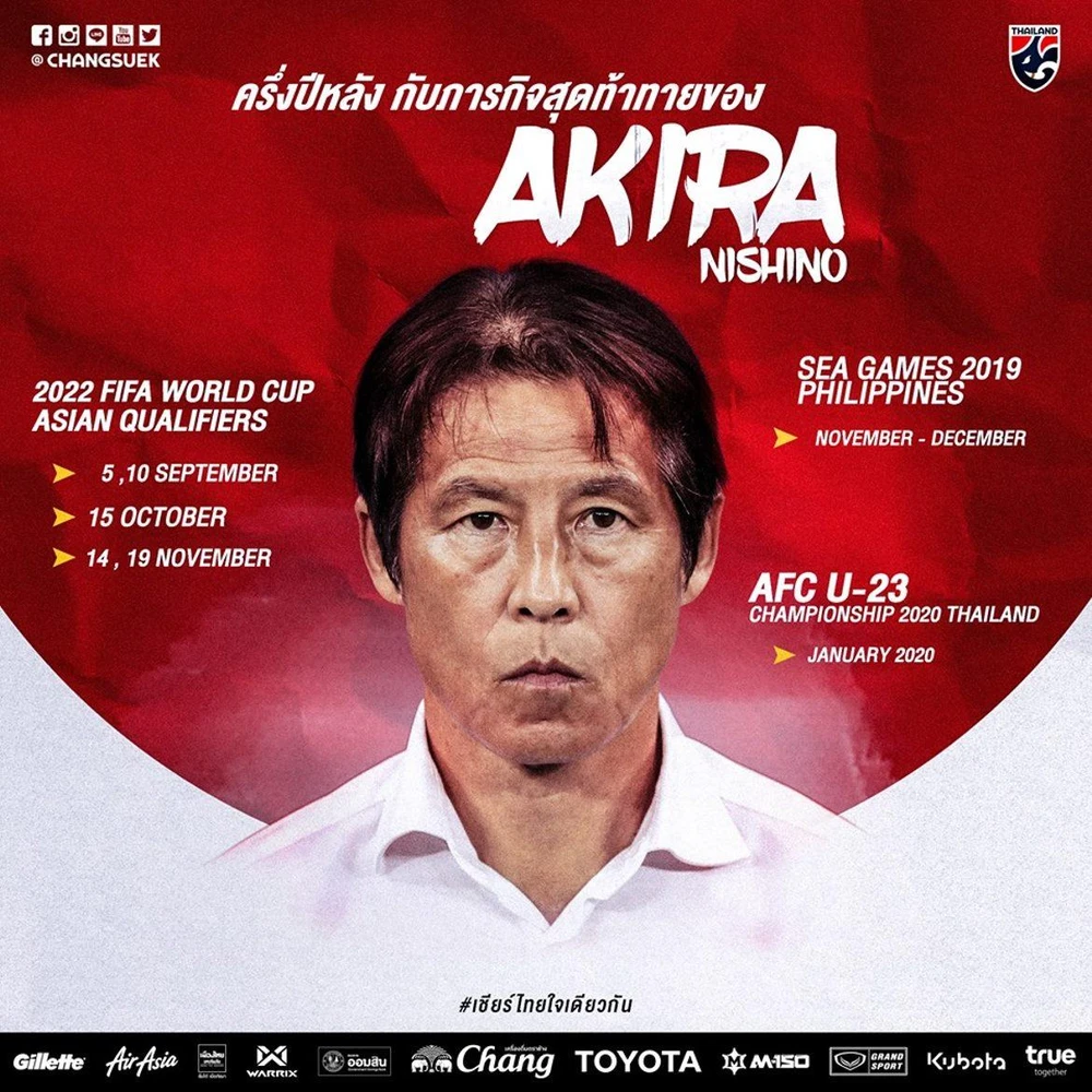 Tờ Siam Sport tiết lộ, Liên đoàn Bóng đá Thái Lan (FAT) đồng ý trả 80.000 USD/tháng để HLV người Nhật Bản Akira Nishino trở thành thuyền trưởng đội tuyển Thái Lan.