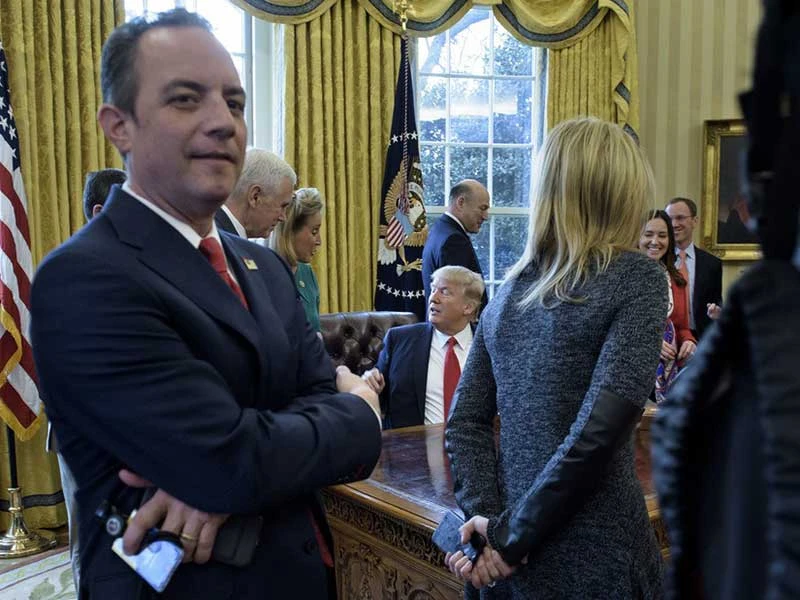 Theo một quan chức Mỹ, những trao đổi giữa Nhà Trắng và FBI về mối quan hệ với chính phủ Nga bắt đầu với sự kiện Phó Giám đốc FBI Andrew McCabe gặp Chánh Văn phòng Nhà Trắng Reince Priebus (ảnh, trái) bên lề cuộc họp ngày 15-2 tại Nhà Trắng.
