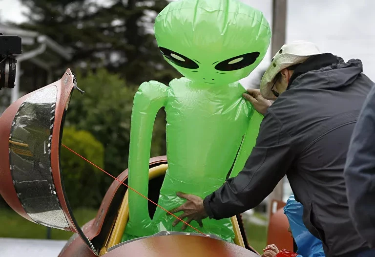 Một mô hình người ngoài hành tinh bằng hơi. Ảnh: AP