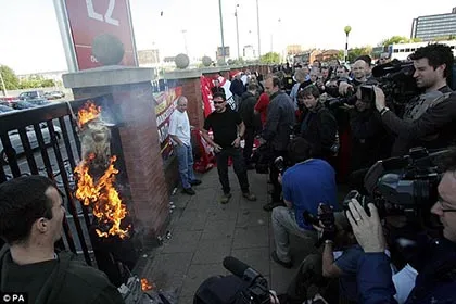 Việc đốt hình nộm, giăng biểu ngữ như 'ghét nhà Glazer, yêu M.U', 'mua M.U, mày sẽ chết' là những hành động thường thấy của CĐV M.U thời điểm đó nhằm phản đối nhà Glazer.