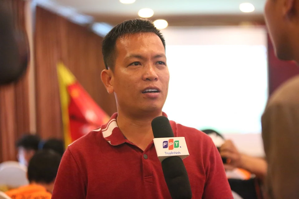 Ông bầu Quốc Michel của CLB FC Quốc An-Quốc Michel trả lời báo chí.